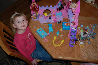 I love playing with my petshops and dolls and barbies and bratz... Mom says I am really good at voice changing... and using my imagination... I was sitting and playing at the kitchen table from the hours of 1:30P.M. ~ 5:ooP.M. that is when I decided to take a potty break get a snack and put them away... Well as I was putting them away I started to play with them again... So I am back at it... Playing Playing Playing...
